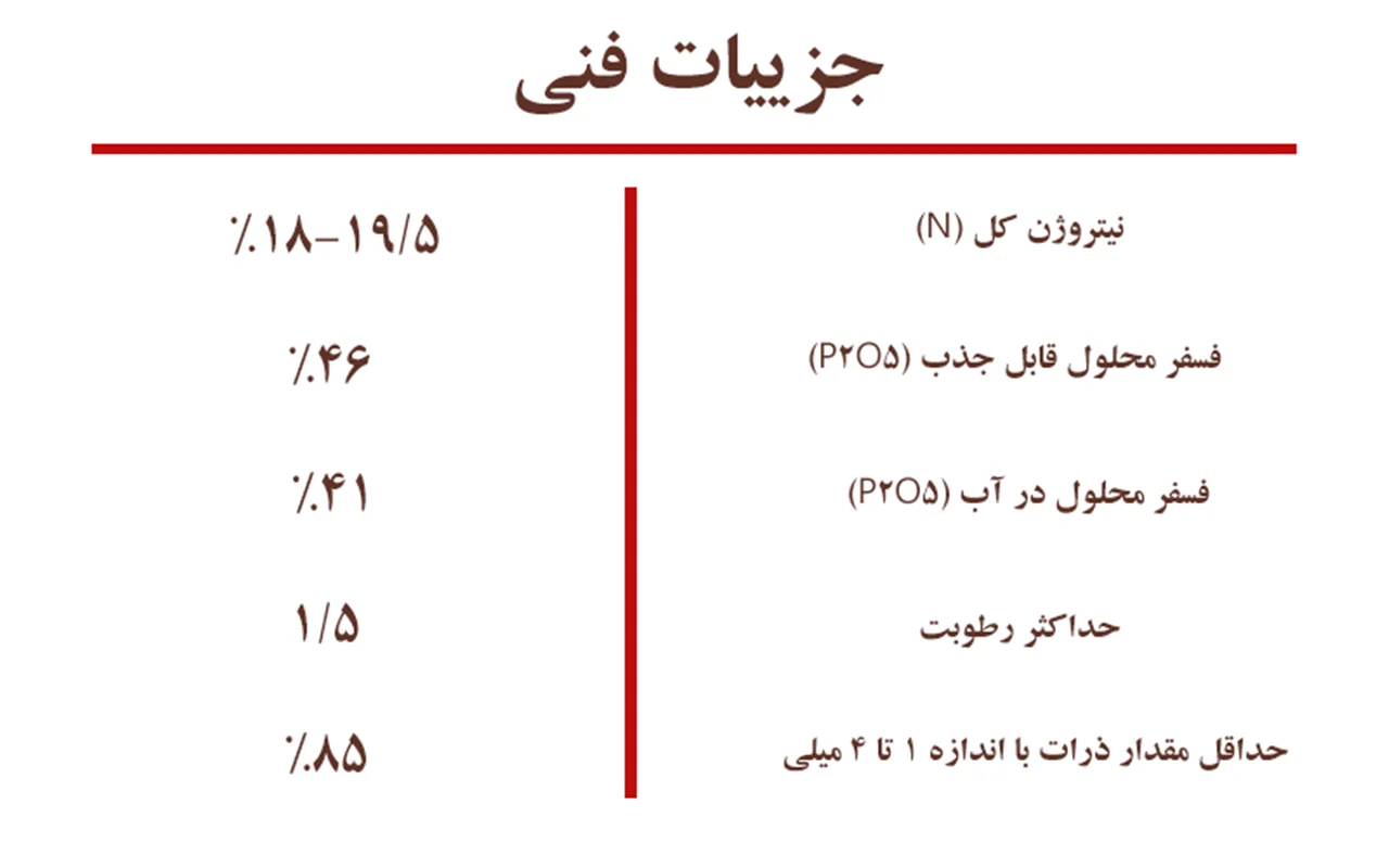 از اصلی ترین مزایای دی آمونیوم فسفات پایداری ازت موجود در آن است که باعث جذب تدریجی آن توسط گیاه می شود و در نتیجه باعث سرسبزی دائمی، افزایش عملکرد و زودرسی محصول خواهد شد.